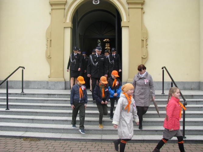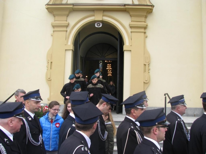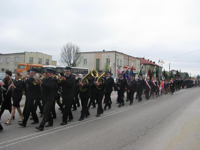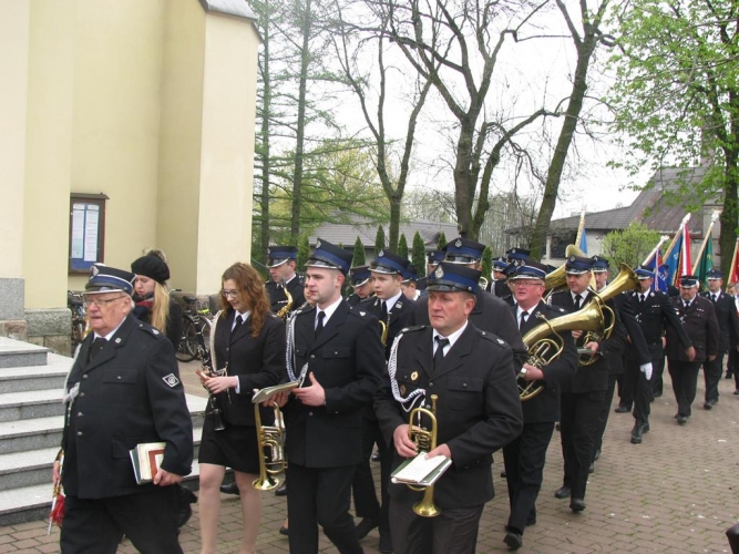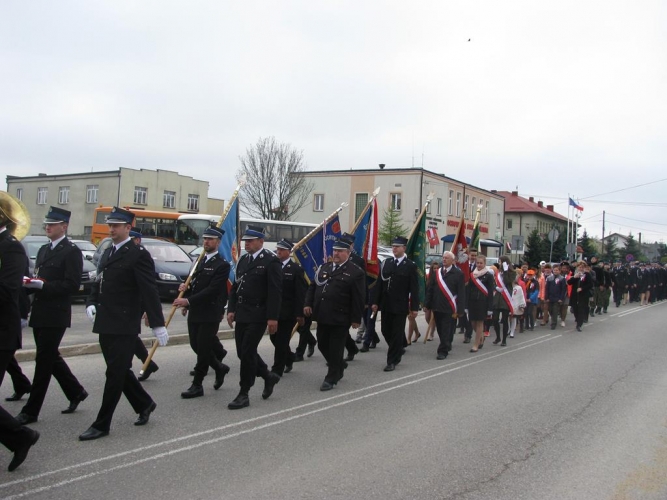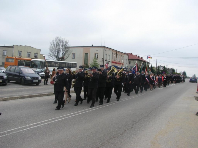 Po jej zakończeniu orkiestra Ochotniczej Straży Pożarnej przeprowadziła poczty sztandarowe oraz wszystkich uczestników na miejsce dalszej celebry.