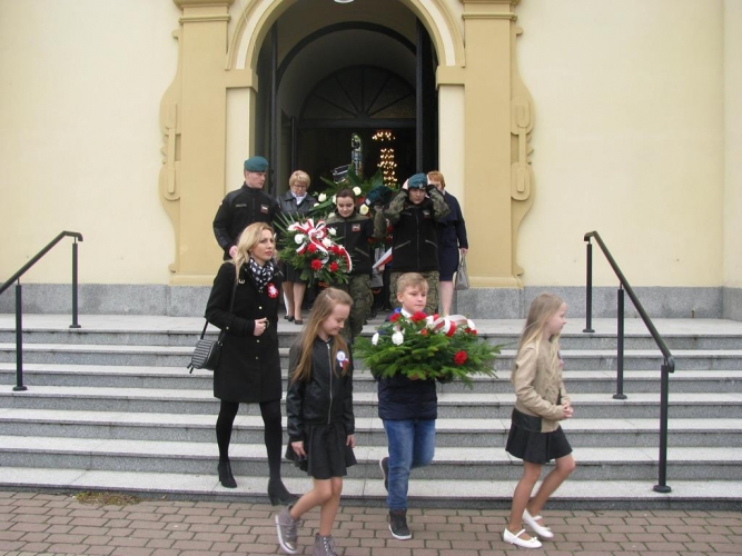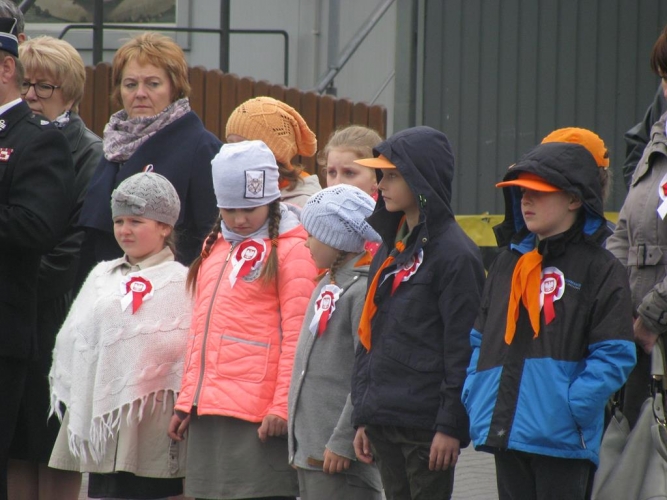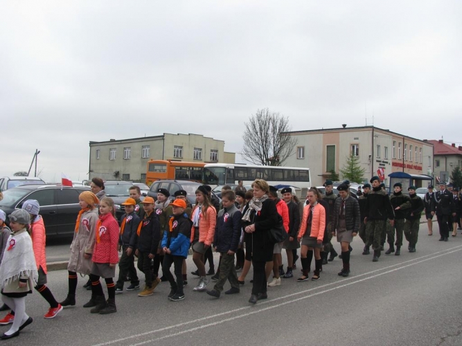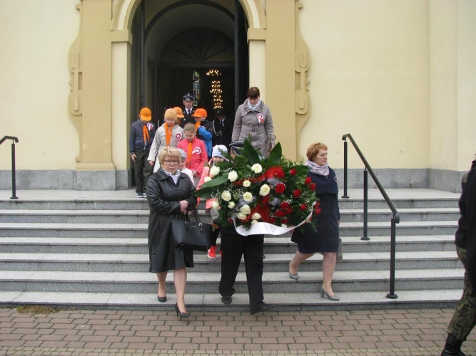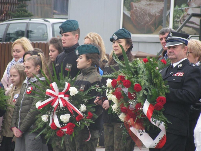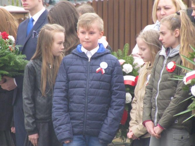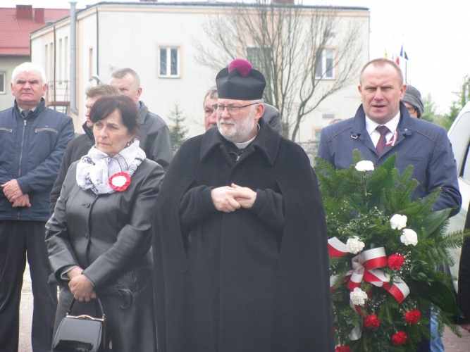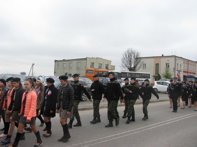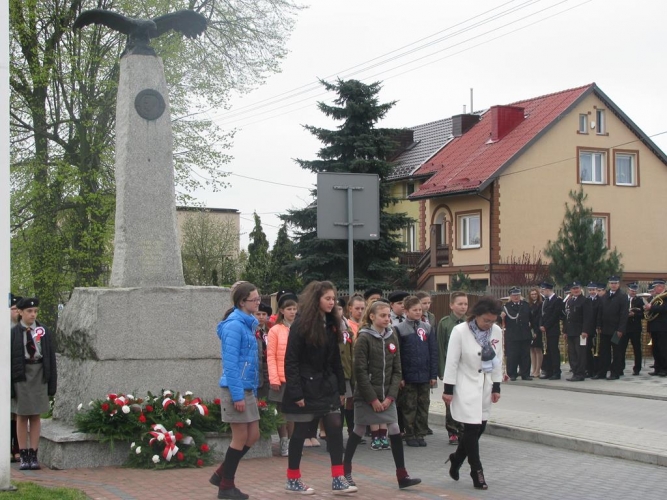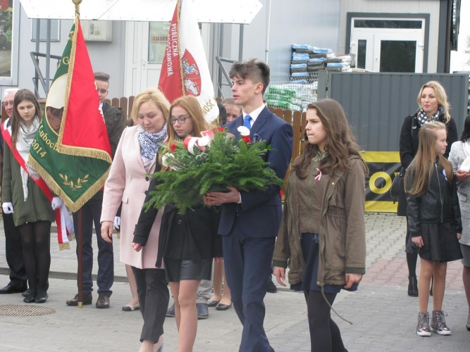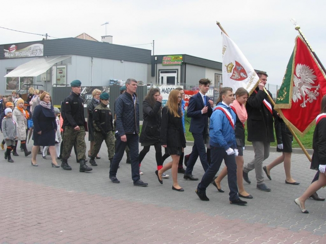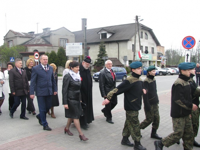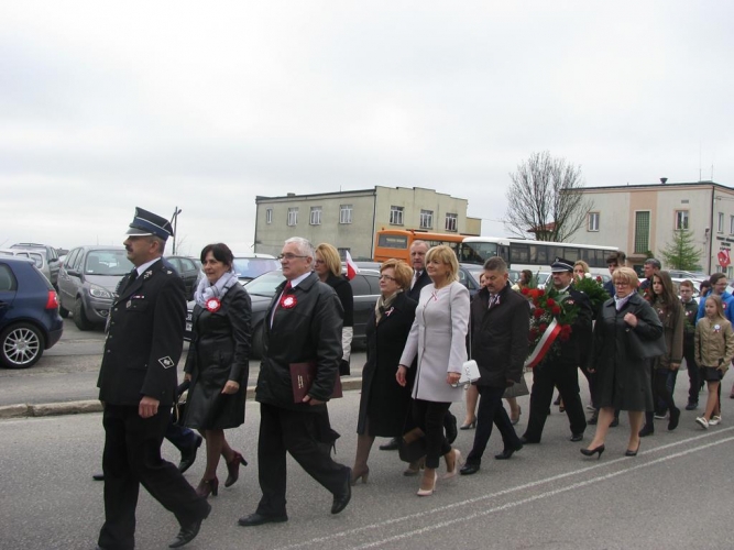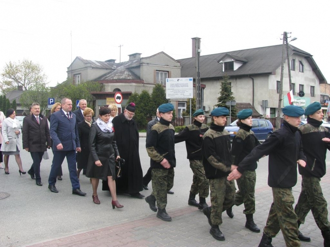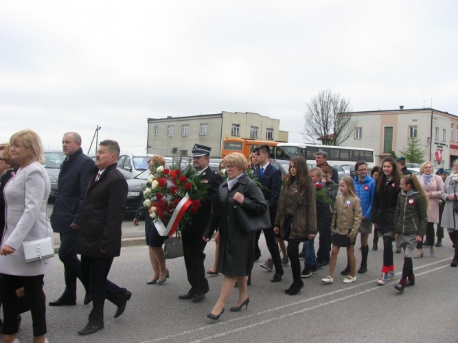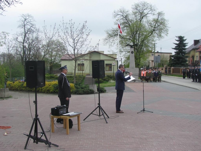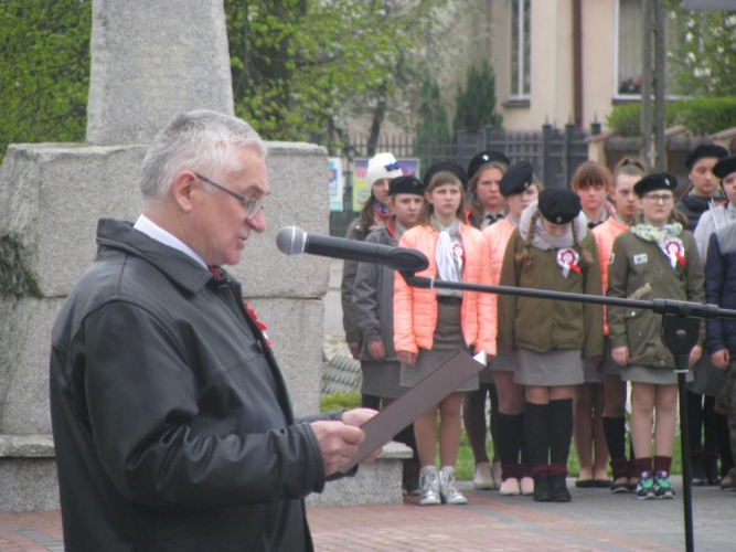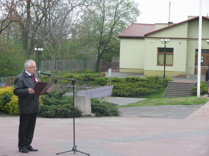 Po odegraniu hymnu narodowego i wciągnięciu flagi państwowej na maszt, przemówienie okolicznościowe wygłosił Wójt Gminy - Tadeusz Józwik.