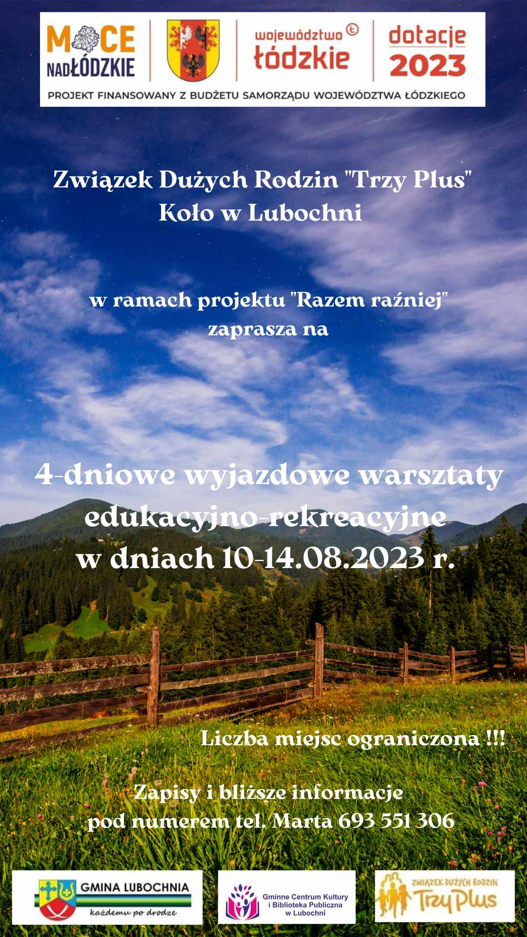 Związek Dużych Rodzin "Trzy Plus" Koło w Lubochnia zaprasza na 4-dniowe wyjazdowe warsztaty edukacyjno-rekreacyjne
