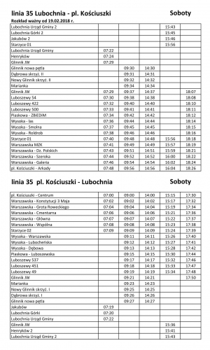 Na prośbę Urzędu Gminy w Lubochni Miejski Zakład Komunikacyjny w Tomaszowie Maz. wprowadza dla linii Nr 35 w rozkładzie obowiązującym w niedziele i święta zmianę trasy  przejazdu, wprowadza również korektę rozkładu jazdy dla linii 35.