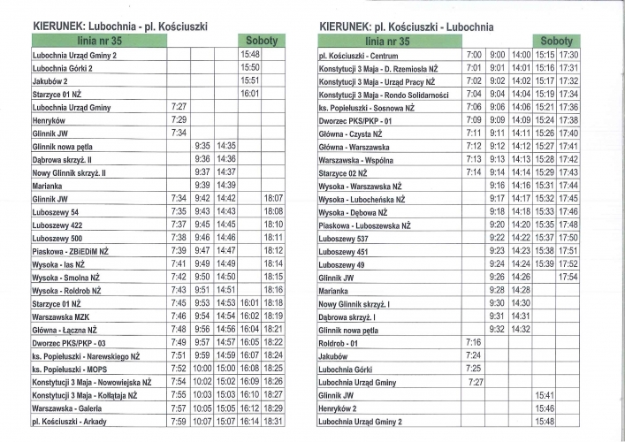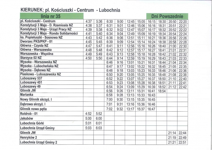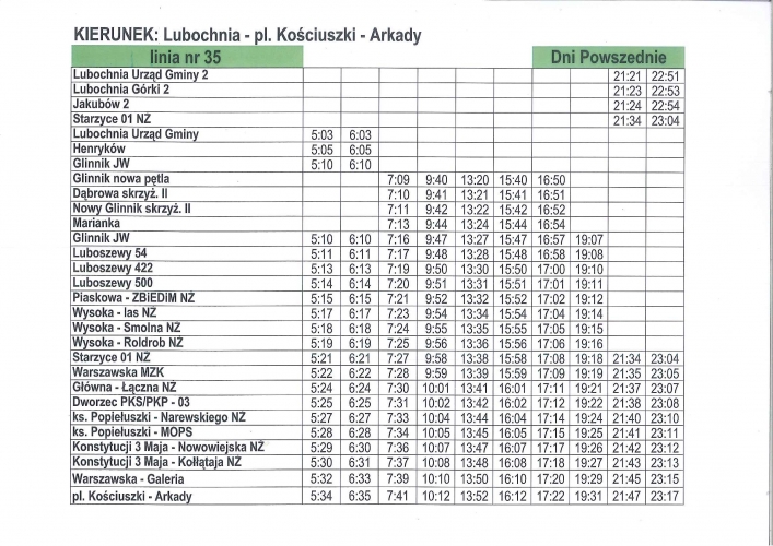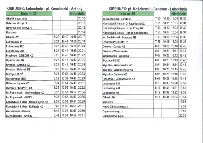 Aktualne rozkłady linii nr 35