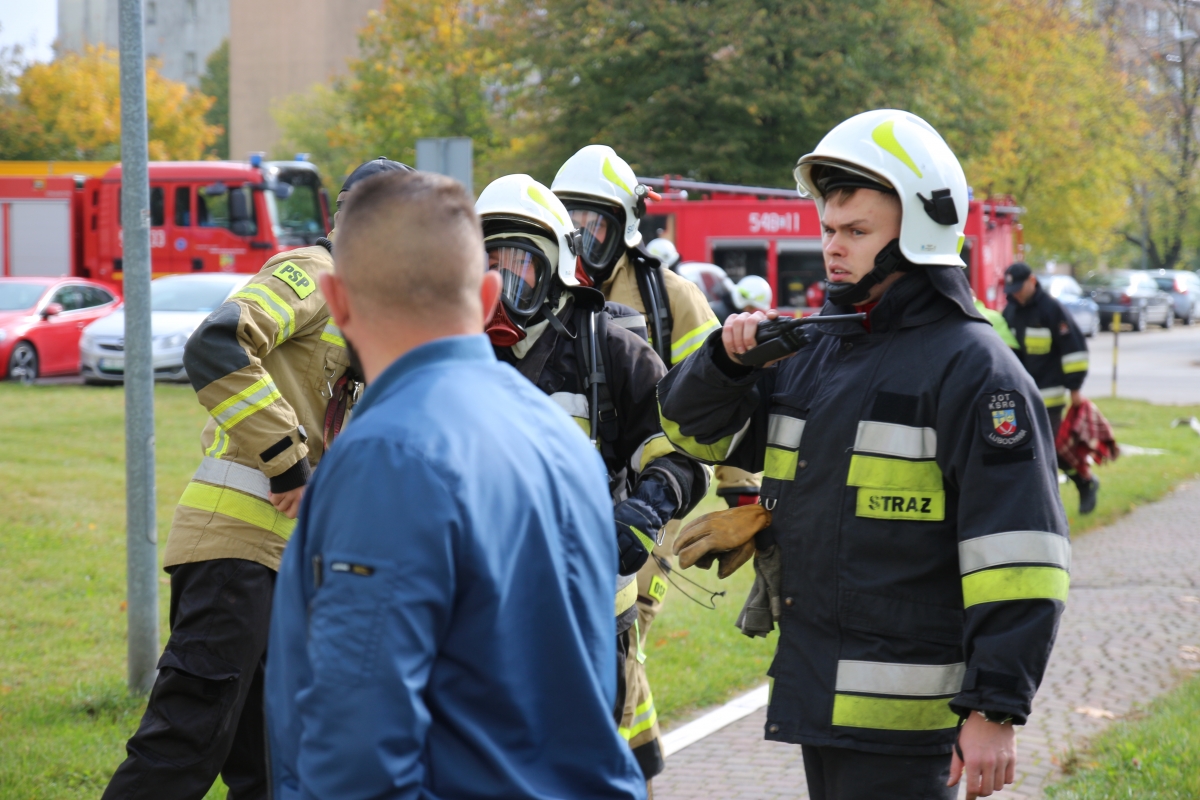 Ćwiczenia przeprowadzone były w oparciu o fikcyjną sytuację wystąpienia pożaru wewnątrz obiektu, który wymagał uruchomienia i przeprowadzenia natychmiastowej ewakuacji mieszkańców bloku bumer 1 oraz powiadomienia alarmowego Straży Pożarnej.