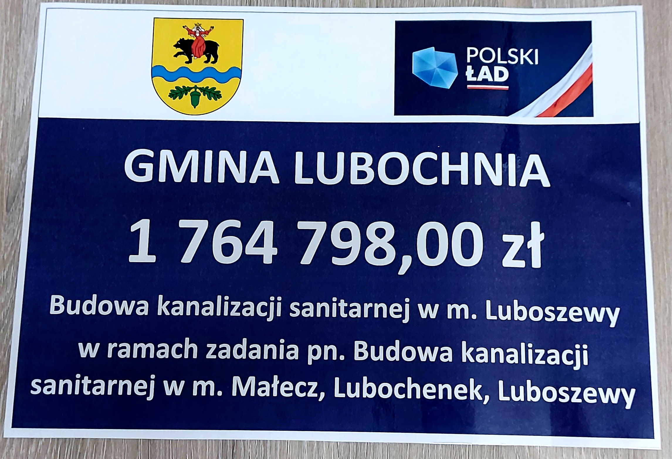 Gmina Lubochnia z Funduszu Polski Ład otrzymała łącznie 7 428 848, 00 zł na dwie inwestycje: