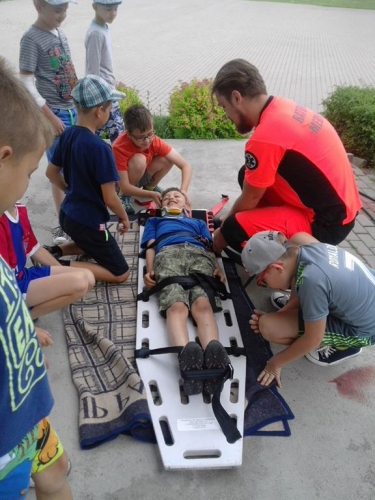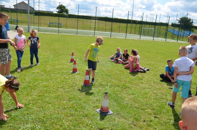 Oferta adresowana była do dzieci w wieku 6 – 12 lat, a zajęcia realizowano od poniedziałku do piątku w godzinach od 10:00 do 14:00. Aby pobyt w Gminnym Centrum Kultury był radosny i atrakcyjny, dużo czasu przeznaczano na wspólne zabawy. Różnorodne gry planszowe, zawody, podchody oraz dziesiątki ciekawych quizów, zgadywanek pochłaniały wszystkich bez reszty. Pierwszy dzień był czasem integracji zapoznania się i zabaw na świeżym powietrzu. Największą popularnością zarówno wśród chłopców  jak i dziewcząt cieszyła się gra w piłkę nożną. W kolejnym dniu odwiedzili nas ratownicy medyczni, by pokazać najważniejsze zasady zachowania się w sytuacjach zagrożenia życia. Dzieci pod czujnym okiem pana Piotra i Michała, ćwiczyły czynności ratownicze podczas zasłabnięć, zranień czy złamań. Duże emocje wywołał pokaz resuscytacji prezentowany na fantomie. Następnie chętni mogli samodzielnie wykazać się praktyczną znajomością udzielania pierwszej pomocy. Był to dzień świetnej zabawy połączony z jakże istotną wiedzą, która może uratować niejedno ludzkie życie.