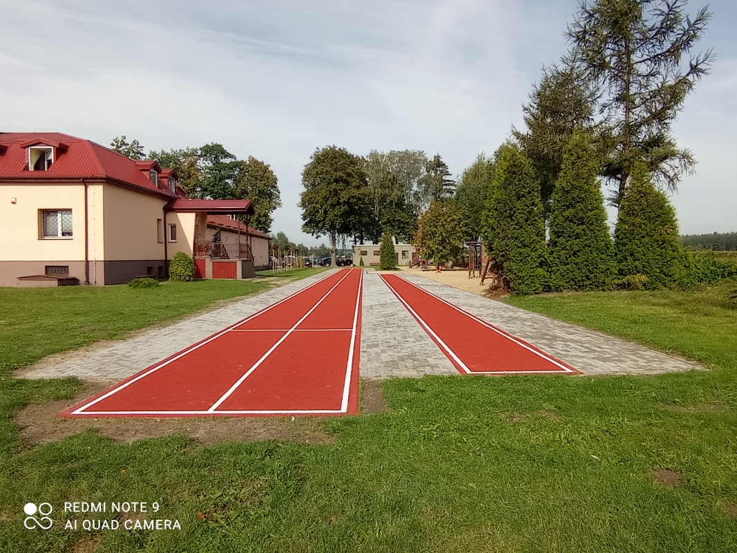 2. Wykonanie bieżni o długości 35 m wraz ze strefą startu o długości 4 m oraz skocznią w dal.