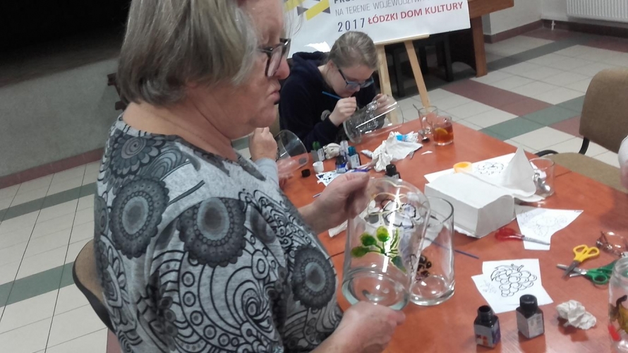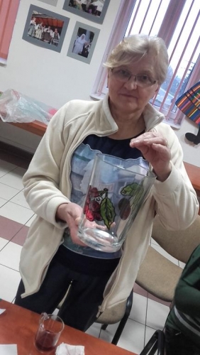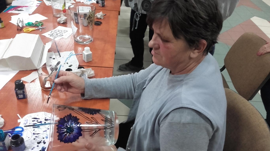 20 i 23 października w Sali Gminnego Centrum Kultury  w ramach tego projektu odbyły się  warsztaty twórcze, tym razem były to zajęcia z malowania na szkle. Podczas warsztatów uczestnicy zapoznali się z techniką malowania specjalnymi farbami do szkła. Podczas pracy Panie  używały  konturówek oraz farby, która wyróżniała się swoją idealną przejrzystością oraz niezwykłymi barwami. Pod okiem instruktora uczestniczki nanosiły obrazy  na szklane wazony.