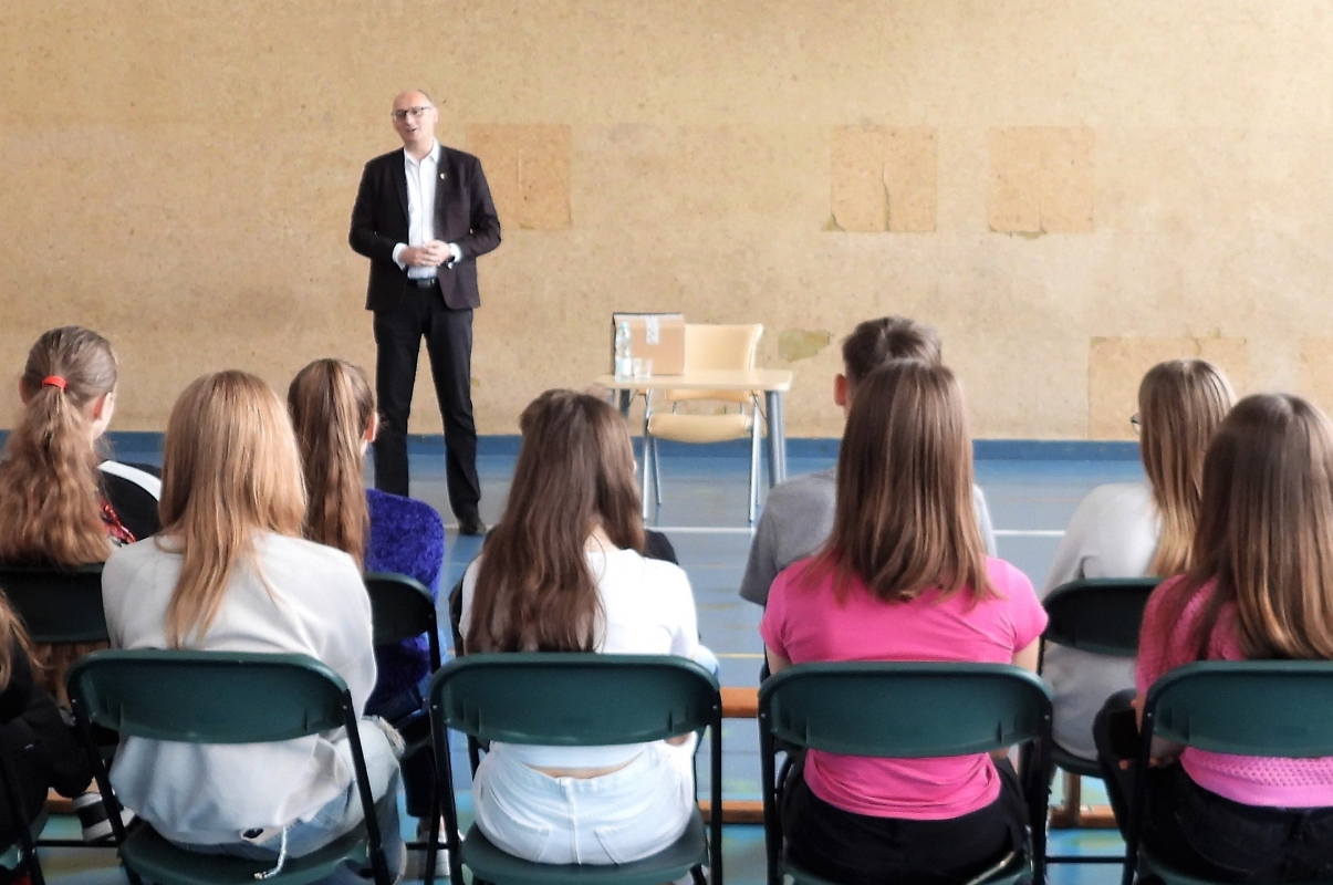 14 czerwca odbyła się lekcja samorządności z udziałem Wójta Gminy Lubochnia - Piotra Majchrowskiego.
