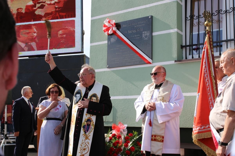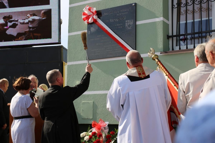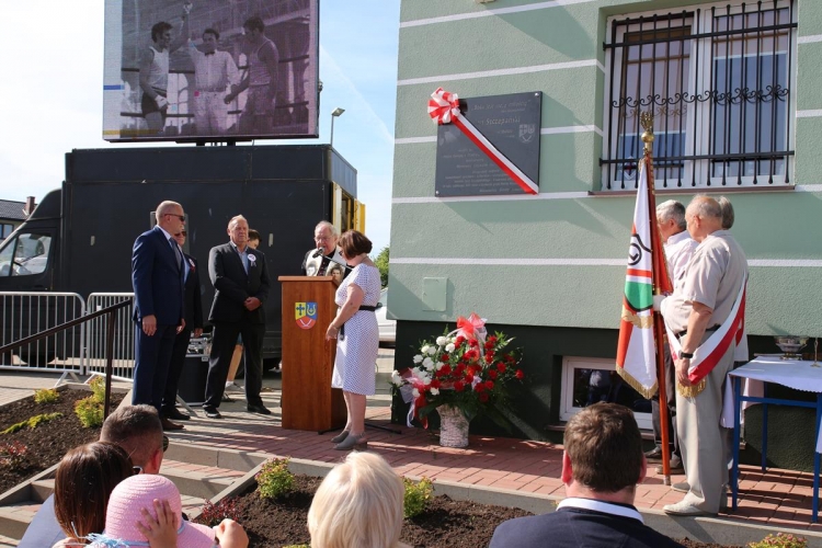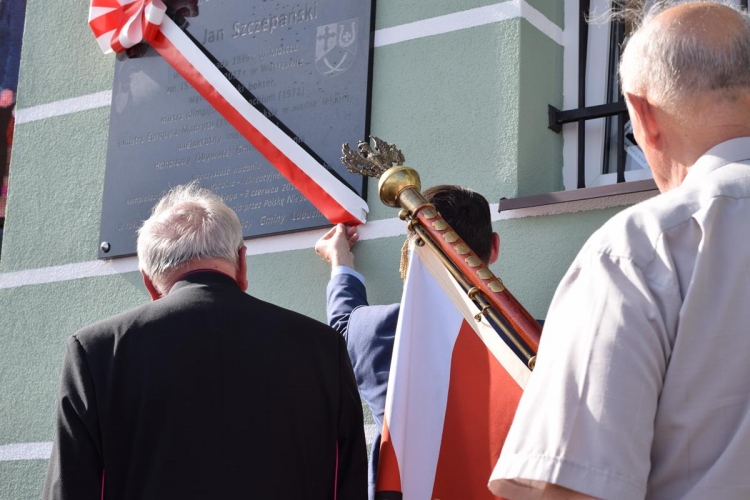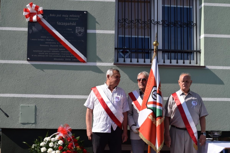 W dalszej części uroczystości miał miejsce kolejny podniosły moment – odsłonięcie ufundowanej przez samorząd i mieszkańców Gminy Lubochnia tablicy pamiątkowej poświęconej  osobie patrona Kompleksu oraz upamiętniającej  to ważne wydarzenie. Odsłonięcia tablicy dokonali: Wiesława Szczepańska – małżonka Jana Szczepańskiego, Dariusz Klimczak – Wicemarszałek Województwa Łódzkiego, Tadeusz Józwik – Wójt Gminy Lubochnia, Tadeusz Skoneczny – Przewodniczący Rady Gminy Lubochnia,  oraz Jerzy Rybicki – mistrz olimpijski oraz wieloletni przyjaciel Jana Szczepańskiego. Uroczystego poświęcenia tablicy pamiątkowej dokonał ks. Tomasz Bojanowski – proboszcz parafii Lubochnia, ks. Stanisław Kuć, były mistrz Europy w boksie w wadze muszej, oraz ks. Mirosław Mikulski – Kapelan Polskich Bokserów, który przyjechał na uroczystość wraz ze sportowcami.