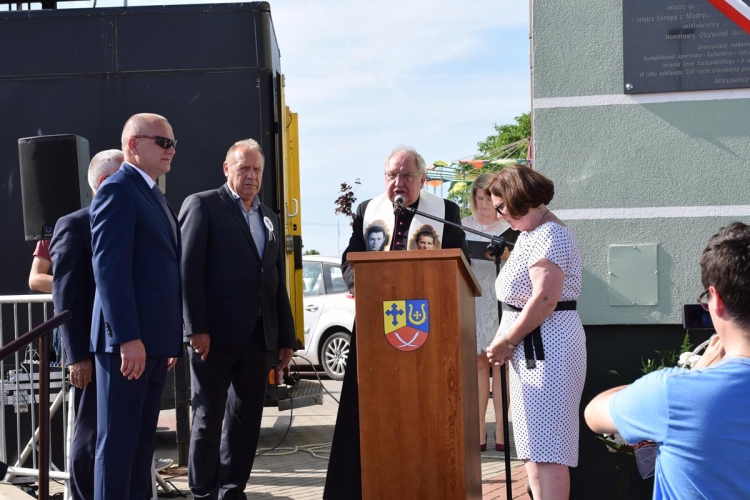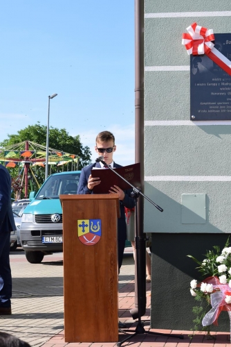 Pan Robert Lek wnuczek Jana Szczepańskiego złożył w imieniu całej rodziny podziękowanie władzom samorządowym za kultywowanie pamięci o jego dziadku, a Pani Wiesława Szczepańska wręczyła  p. Wójtowi pamiątkowy dyplom Jana Szczepańskiego, który otrzymał  za zdobycie tytułu vice mistrza Polski w boksie w roku 1958.