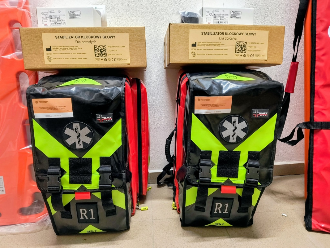 • 4 zestawy ratownictwa medycznego z wyposażeniem minimalnym zgodnym ze standardem R1,