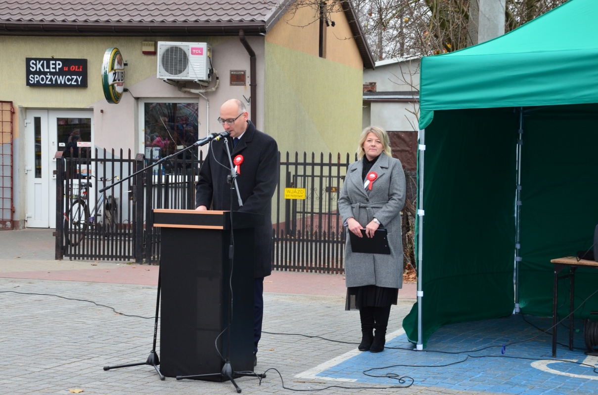 Po odegraniu hymnu narodowego i wciągnięciu flagi państwowej na maszt przemówienie okolicznościowe wygłosił Wójt Gminy Lubochnia – pan Piotr Majchrowski.