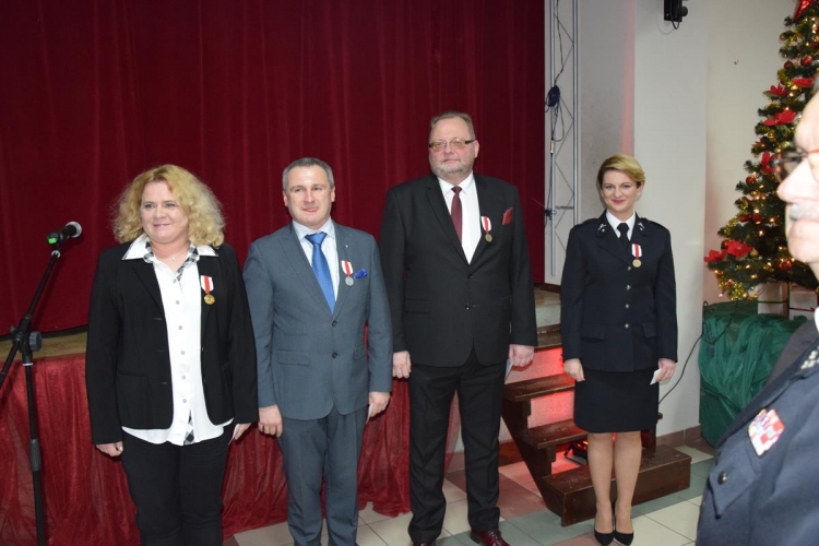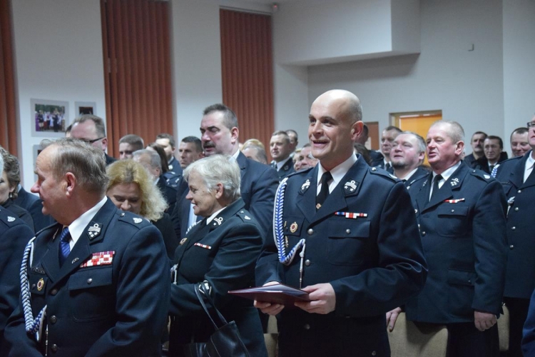 Tadeusz Cisowski – Prezes Zarządu Oddziału Powiatowego ZOSP mówił o ważnej roli strażaków, złożył podziękowania za miniony rok i złożył życzenia pomyślności w roku obecnym. Wspólnie z Marią Pecyną – sekretarzem Zarządu Oddziału Powiatowego wręczyli odznaczenia.