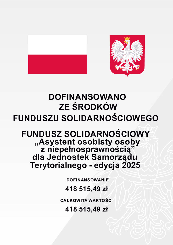 Program "Asystent osobisty osoby z niepełnosprawnością" dla Jednostek Samorządu Terytorialnego - edycja 2025 jest realizowany przez Gminę Lubochnia we współpracy z Gminnym Ośrodkiem Pomocy Społecznej w Lubochni. Zadanie to jest finansowane w ramach programu Ministra Rodziny, Pracy i Polityki Społecznej ze środków Funduszu Solidarnościowego na podstawie ustawy z dnia 23 października 2018 roku.