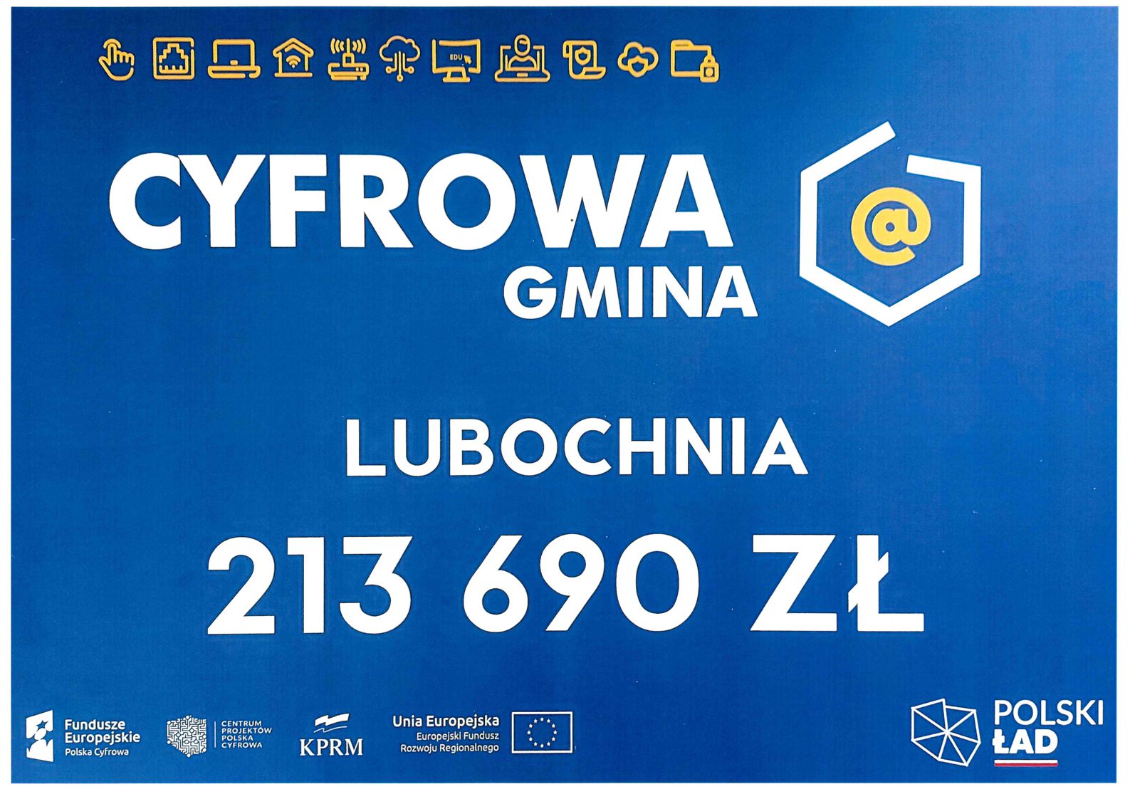 Gmina Lubochnia złożyła wniosek o grant w II rundzie naboru wniosków w konkursie „Cyfrowa Gmina”  w ramach Programu Operacyjny Polska Cyfrowa na lata 2014 – 2020 Oś V. Rozwój cyfrowy JST oraz wzmocnienie cyfrowej odporności na zagrożenia - REACT-EU.  Wniosek został pozytywnie oceniony przez Komisję Przyznającą Granty oraz otrzymał maksymalną intensywność dofinansowania (100% kosztów kwalifikowalnych) w kwocie: 213.690,00 zł.