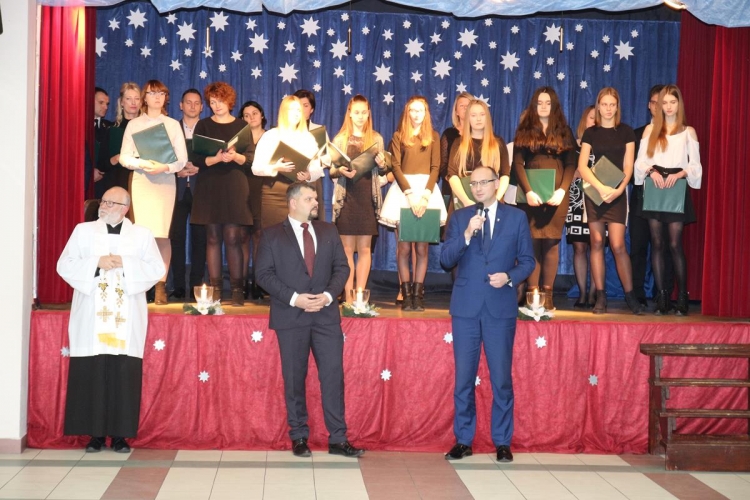 Po powitaniu gości Wójt Gminy Piotr Majchrowski wraz z Przewodniczącym Rady Gminy Pawłem Bachura złożyli wszystkim zebranym oraz mieszkańcom gminy życzenia świąteczne i noworoczne. Proboszcz Parafii Lubochnia ks. dziekan Tomasz Bojanowski odprawił wspólną modlitwę, po której zebrani przełamali się opłatkiem składając wzajemnie życzenia.