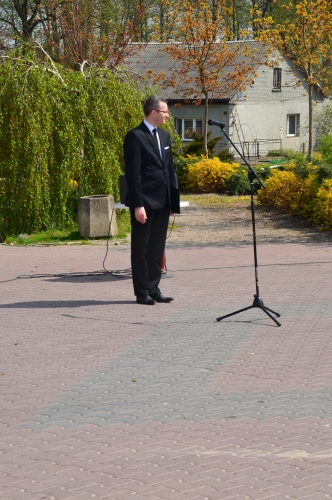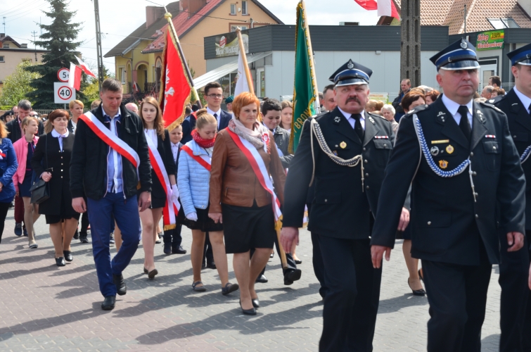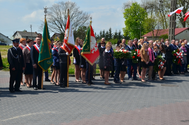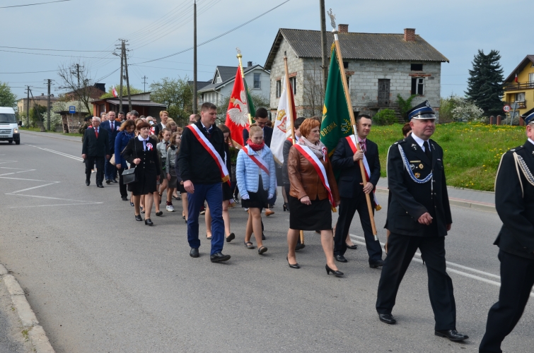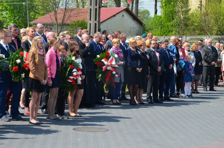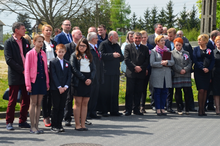 Po odegraniu hymnu narodowego i wciągnięciu flagi państwowej na maszt przemówienie okolicznościowe wygłosił Wójt Gminy Lubochnia Pan Tadeusz Józwik. Wszystkim zebranym przypomniał, że Ustawa Rządowa z 3 maja 1791 roku jest jednym z filarów, na którym możemy budować obecnie nasz kraj. Innym bardzo ważnym wydarzeniem dziejowym w historii naszego kraju, wspomnianym przez Wójta Gminy, był chrzest Mieszka I, którego 1050 rocznicę obchodzimy w tym roku.