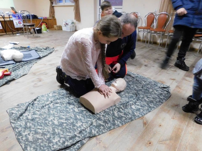 Podczas pokazu i szkolenia prowadzący w przystępnym języku omówił zagadnienia oraz w formie slajdów pokazał jak należy postępować w przypadkach zagrożenia zdrowia i życia osób poszkodowanych. Zwrócił szczególną uwagę na zabezpieczenie i bezpieczeństwo poszkodowanego oraz osoby ratującej.