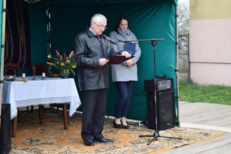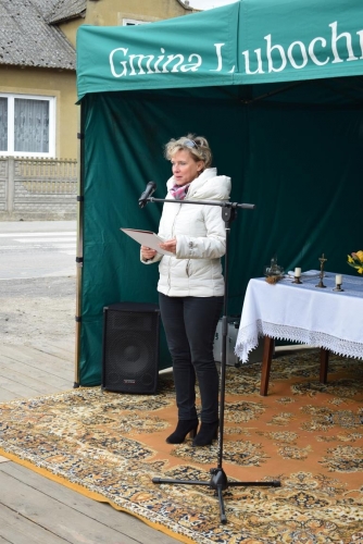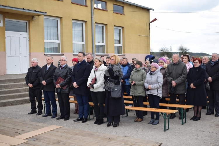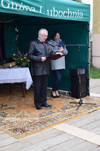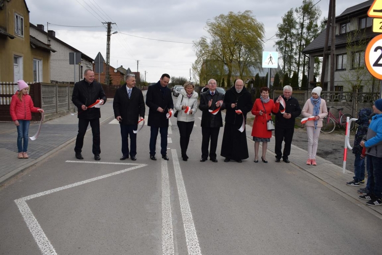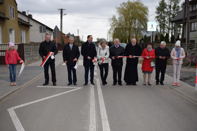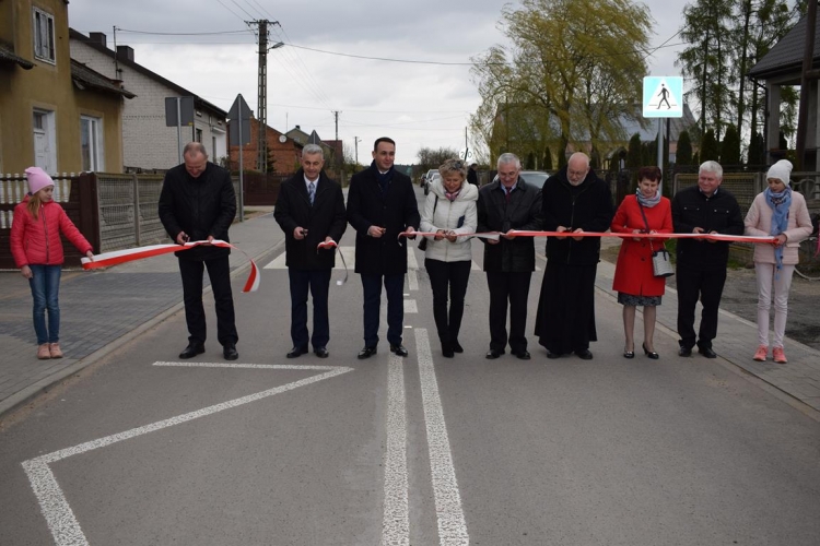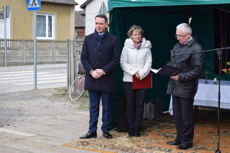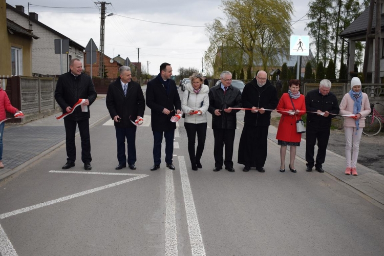 Po mszy św. Wójt Gminy Tadeusz Józwik powitał gości, podsumował zrealizowaną inwestycję oraz wręczył podziękowania Wicemarszałkowi Województwa Łódzkiemu Dariuszowi Klimczakowi oraz Wojewodzie Łódzkiemu Zbigniewowi Rau, które odebrała Pani Anna Zając za  udzieloną pomoc i wsparcie gminnych działań, których efektem było pozyskanie środków finansowych na realizację inwestycji drogowej.