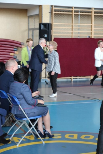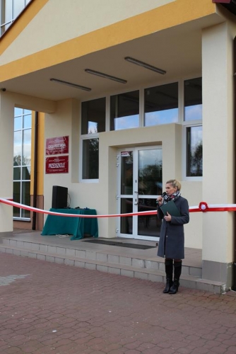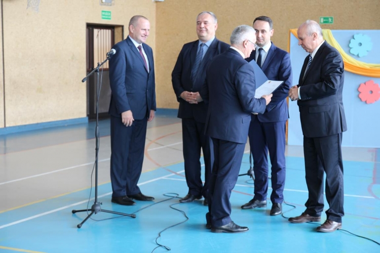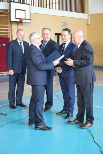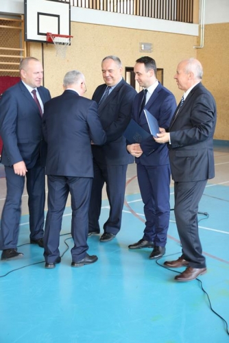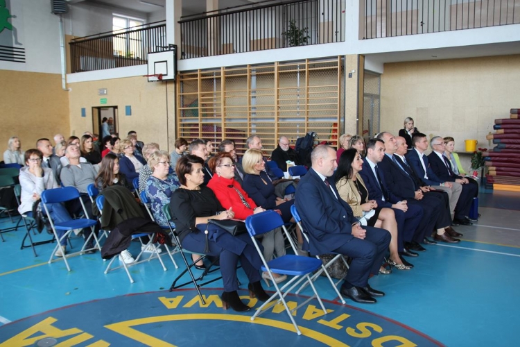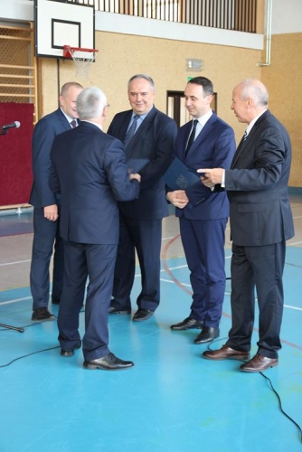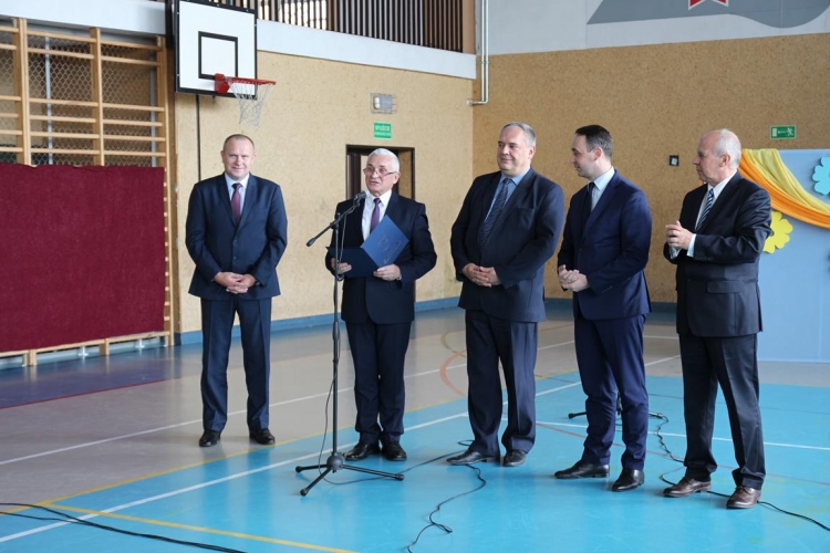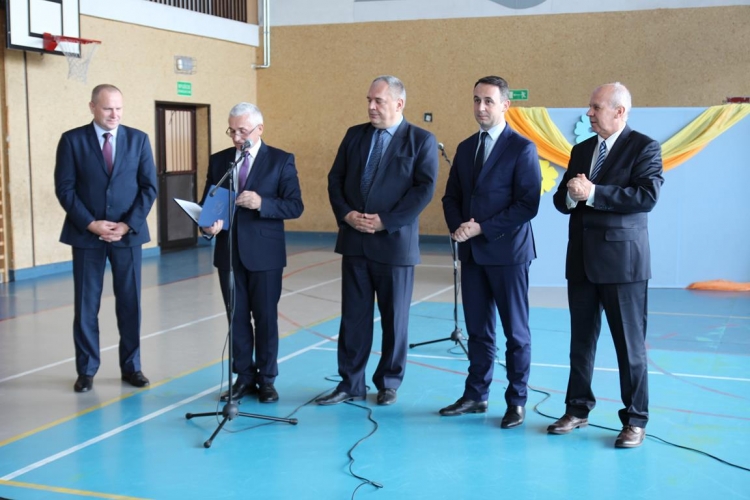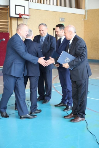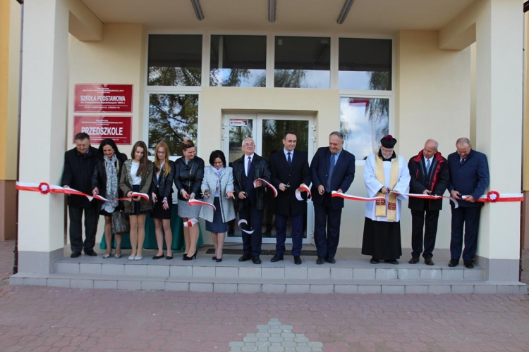 Uroczystość rozpoczęła się od powitania zaproszonych gości przez Wójta Gminy Tadeusz Józwika, który również podsumował zrealizowaną inwestycję oraz wręczył podziękowania za pomoc i wsparcie gminnych działań, których efektem było pozyskanie środków finansowych na realizację inwestycji. Podziękowania otrzymali: Dariusz Klimczak - Wicemarszałek Województwa Łódzkiego, Witold Stępień – Marszałek Województwa Łódzkiego na ręce Arkadiusza Gajewskiego - radnego Sejmiku Województwa Łódzkiego oraz Wojewoda Łódzki Zbigniew Rau na ręce Marka Michalaka - dyrektora Wydziału Infrastruktury i Rolnictwa Urzędu Wojewódzkiego w Łodzi.