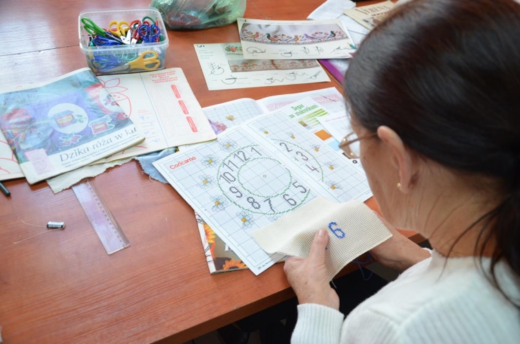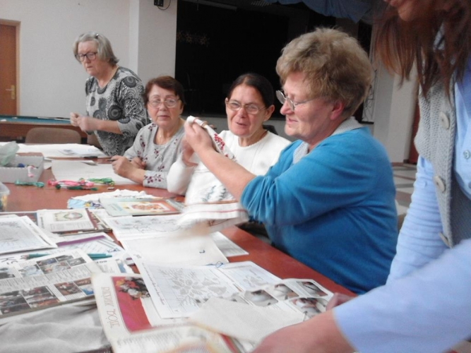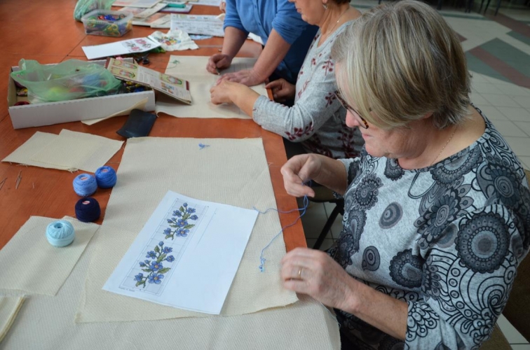 Podczas warsztatów prowadząca zajęcia przedstawiła podstawowe zasady haftu krzyżykowego. Uczestnicy warsztatów poznali sposób wykonywania poszczególnych krzyżyków, tak aby wzór rozłożył się równomiernie i dokładnie na kanwie. Po zapoznaniu uczestników z zasadami ogólnymi wykonywania haftu, przystąpiono do zajęć praktycznych.  Podczas spotkania panie haftowały wzory kwiatowe. Wykonywanie haftów przysporzyło uczestnikom wiele radości i satysfakcji, choć jak się okazało nie było to proste zadanie.