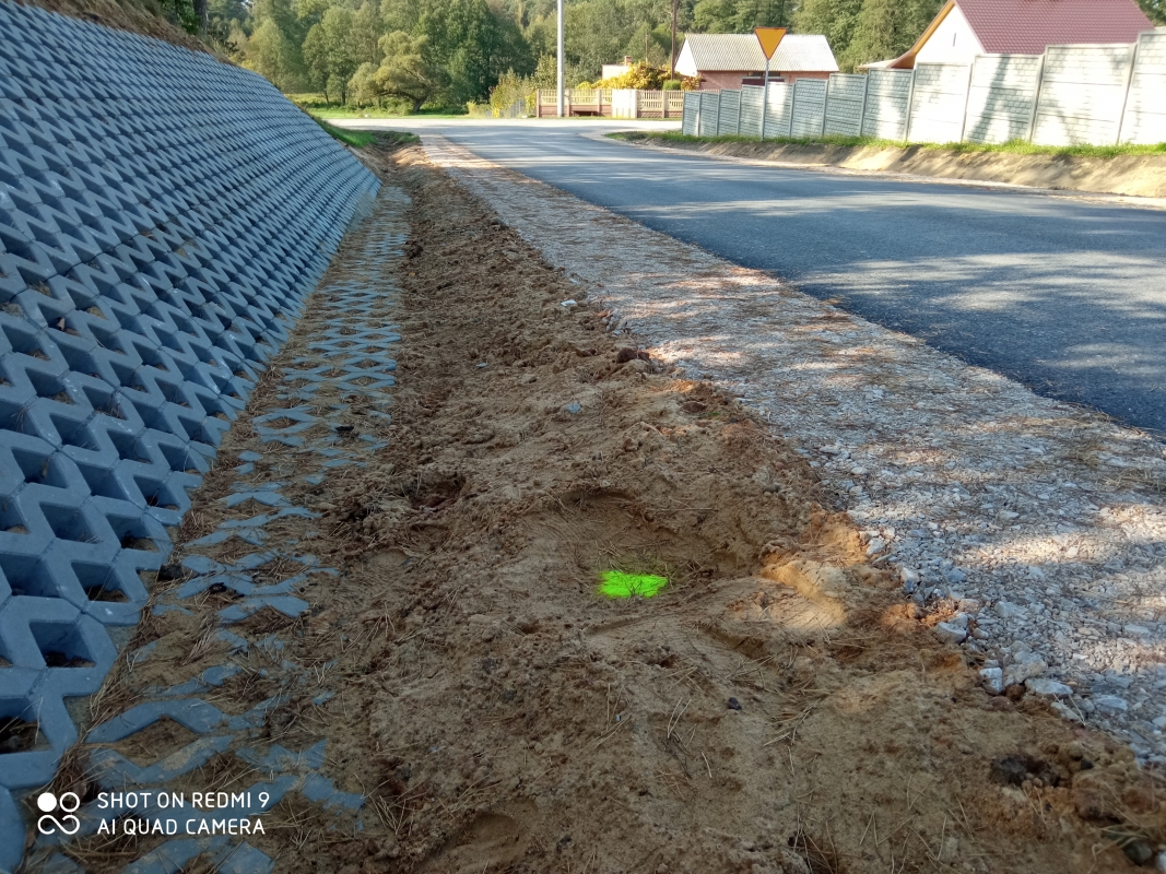 - poszerzenia jezdni z celu osiągnięcia stałego pięciometrowego przekroju jezdni,