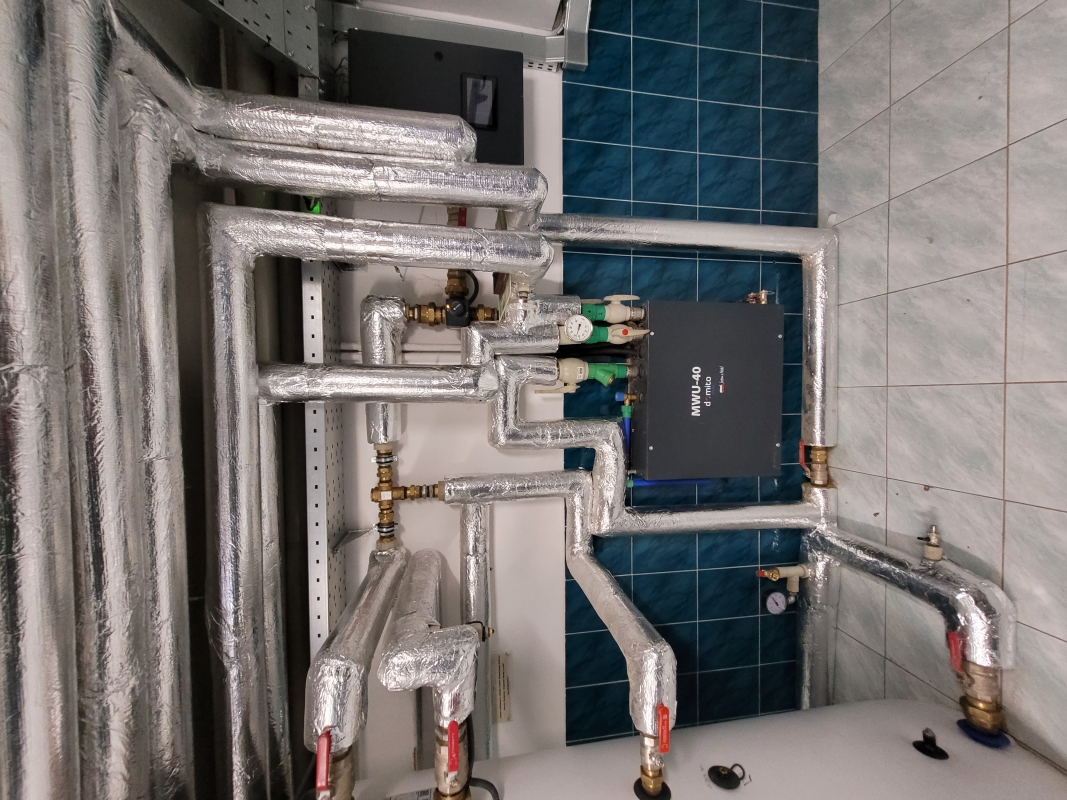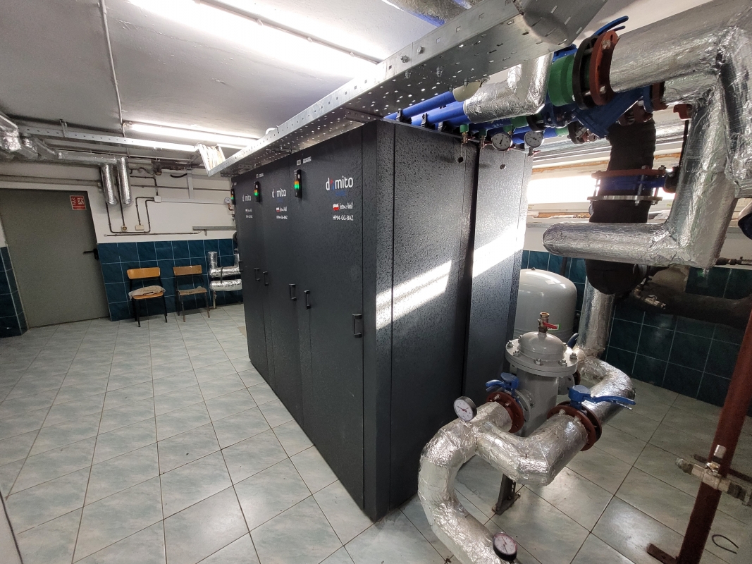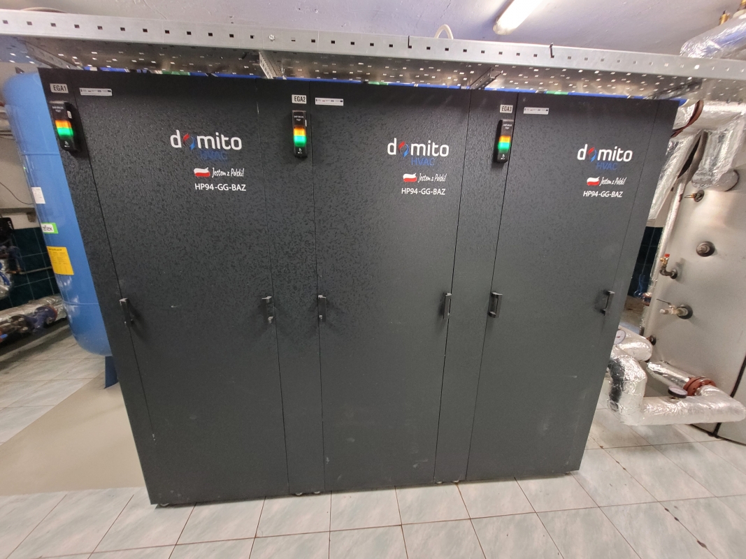 - dostawę i montaż pompy ciepła 280 kW – trzy pompy pracujące w kaskadzie,