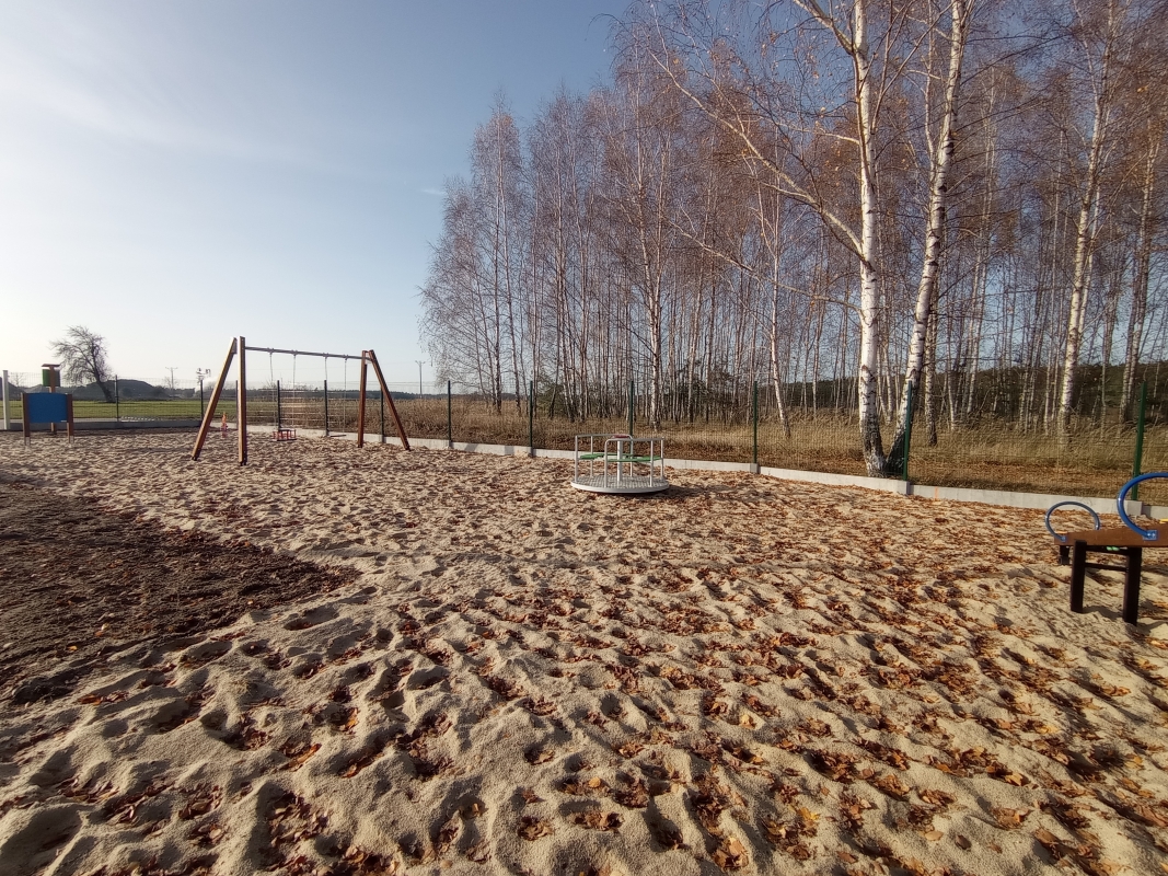 3. Wyposażenie placu zabaw w urządzenia, tj. bujak sprężynowy, huśtawka wahadłowa podwójna, karuzela tarczowa, huśtawka wagowa pojedyncza, zestaw zabawowy.