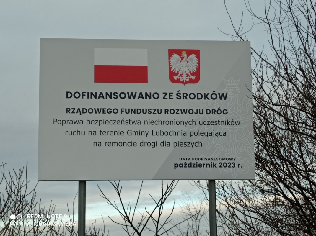 Poprawa bezpieczeństwa niechronionych uczestników ruchu na terenie Gminy Lubochnia polegająca na remoncie drogi dla pieszych