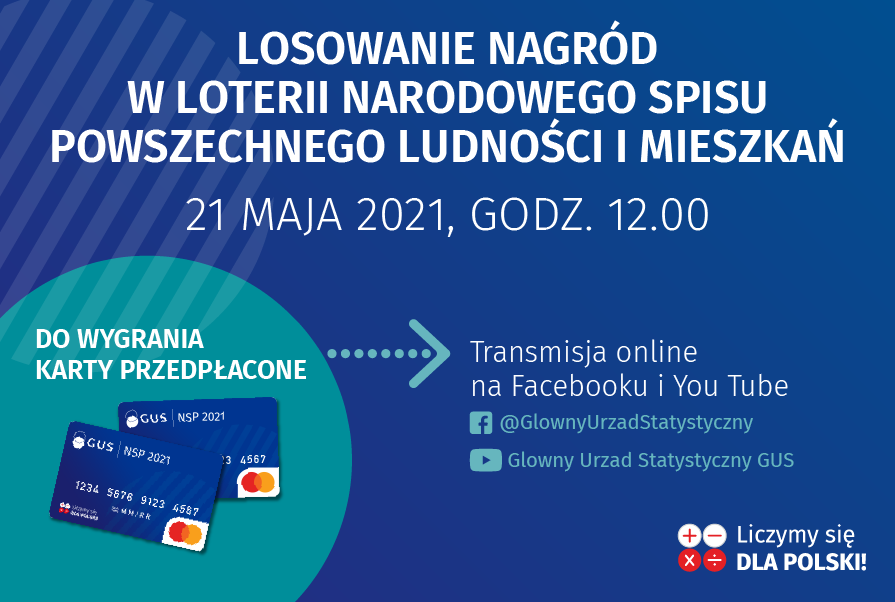 21 maja br. o godz. 12:00 odbędzie się drugie losowanie nagród w Loterii, z którego transmisja odbędzie się na profilach GUS na Facebooku i YouTube.