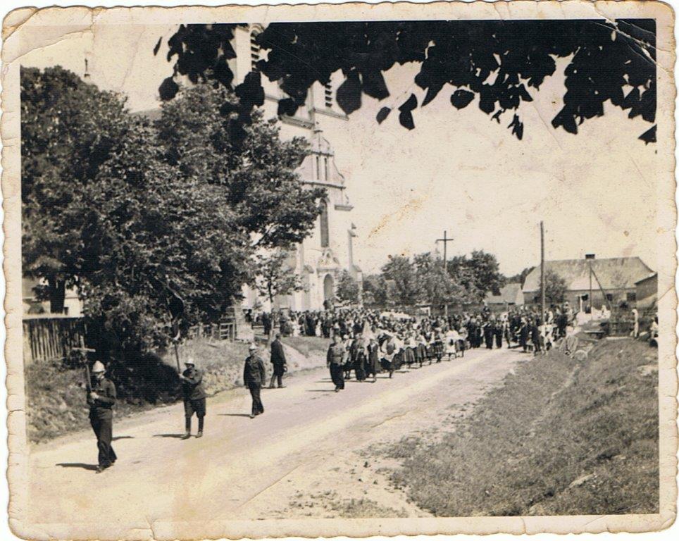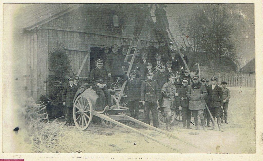 Pogrzeb strażaka w okresie międzywojennym - skrzyżowanie w Lubochni