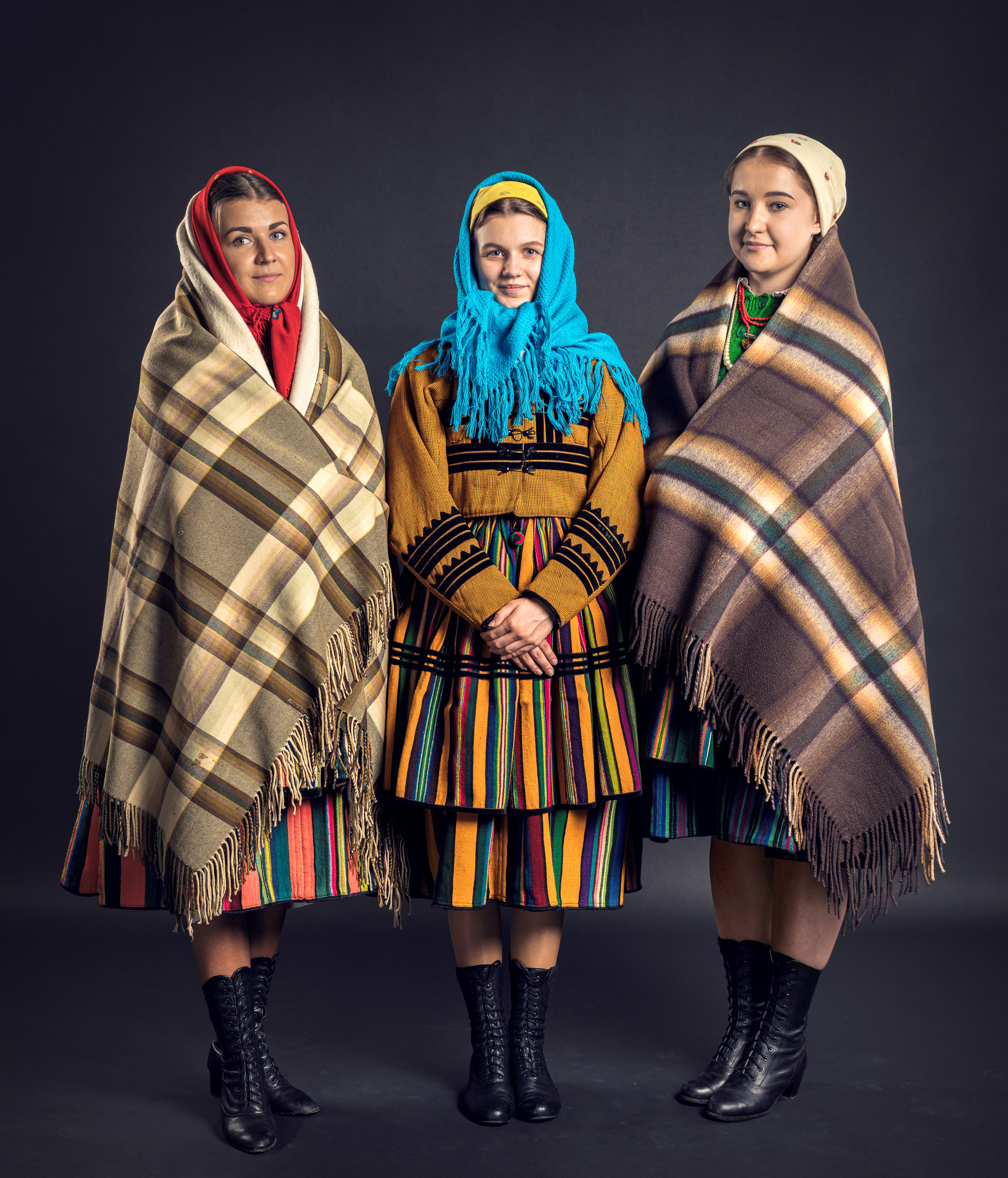 Na głowę kobiety zakładają wełniane chustki z frędzlami tzw. ”salinówki” o wymiarach 75X75 cm we wzory kwiatowe (wyszywane lub z nadrukiem ). Wiążą je z tyłu głowy.