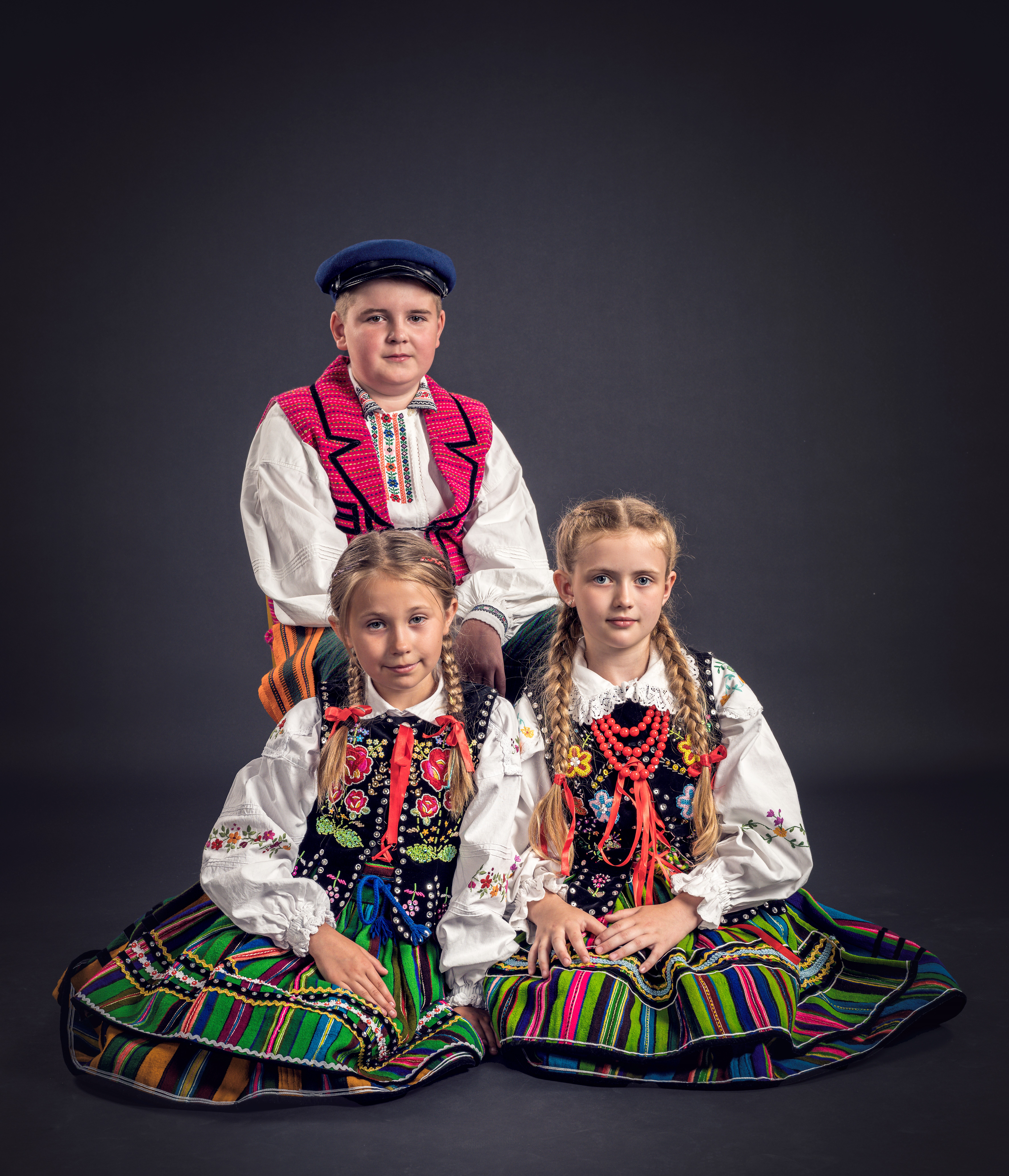 Cały strój dopełniają ozdoby. Zakłada się czerwone korale – krakowskie (trzy sznury) lub szklane kolorowe paciorki „ dętki”( obecnie plastikowe). Koszulę pod broda zapina się broszką.